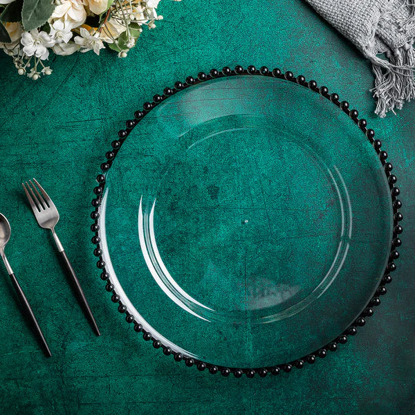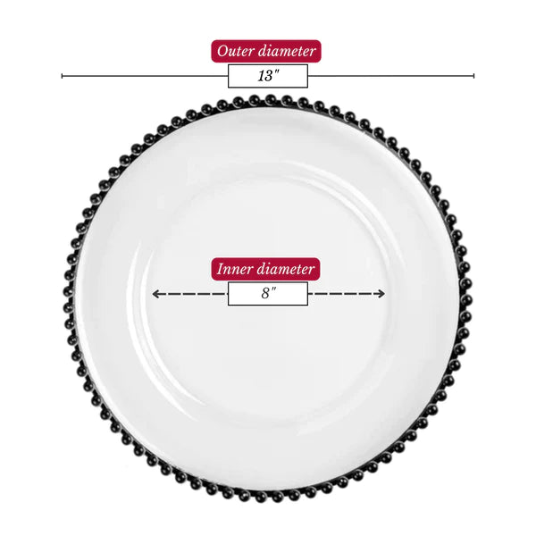 Acrylic Beaded 13" Round Charger Plate - Black Trim