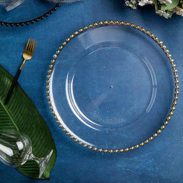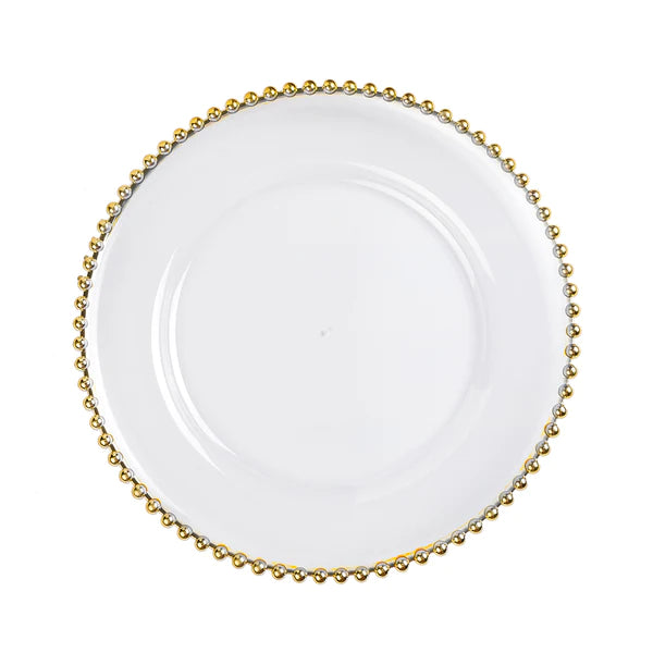 Acrylic Beaded 13" Round Charger Plate - Gold Trim