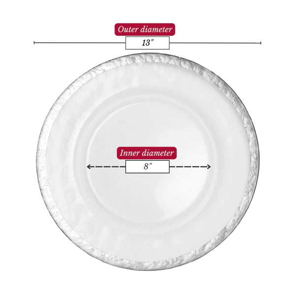 Ensure the details of your table aren't forgotten and finish off your tablescape with our classically gorgeous Alpine Glass Charger Plates! Rich in color and made of fine glass, these charger plates are a statement piece to guarantee your event is chic and modern. Not only do they look fabulous, but they're also functional and can save your tablecloth from possible staining. Charger plates are purely for furnishing, so be sure to have dishware to place on top. Pair with our Satin, Glitz, Taffeta, Lamour, Pintuck, or Polyester napkins to really refine your decor!