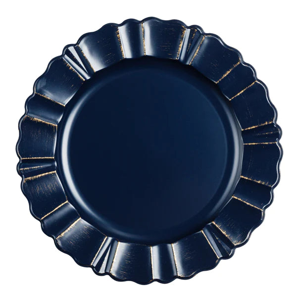 Waved Scalloped Acrylic 13" Charger Plate - Navy Blue & Gold
